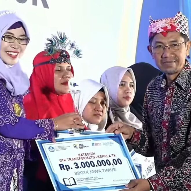 Rahayu Asyhari S.Pd., M.Pd. Raih Penghargaan GTK Transformasi Kepala TK dari BBGTK Jawa Timur